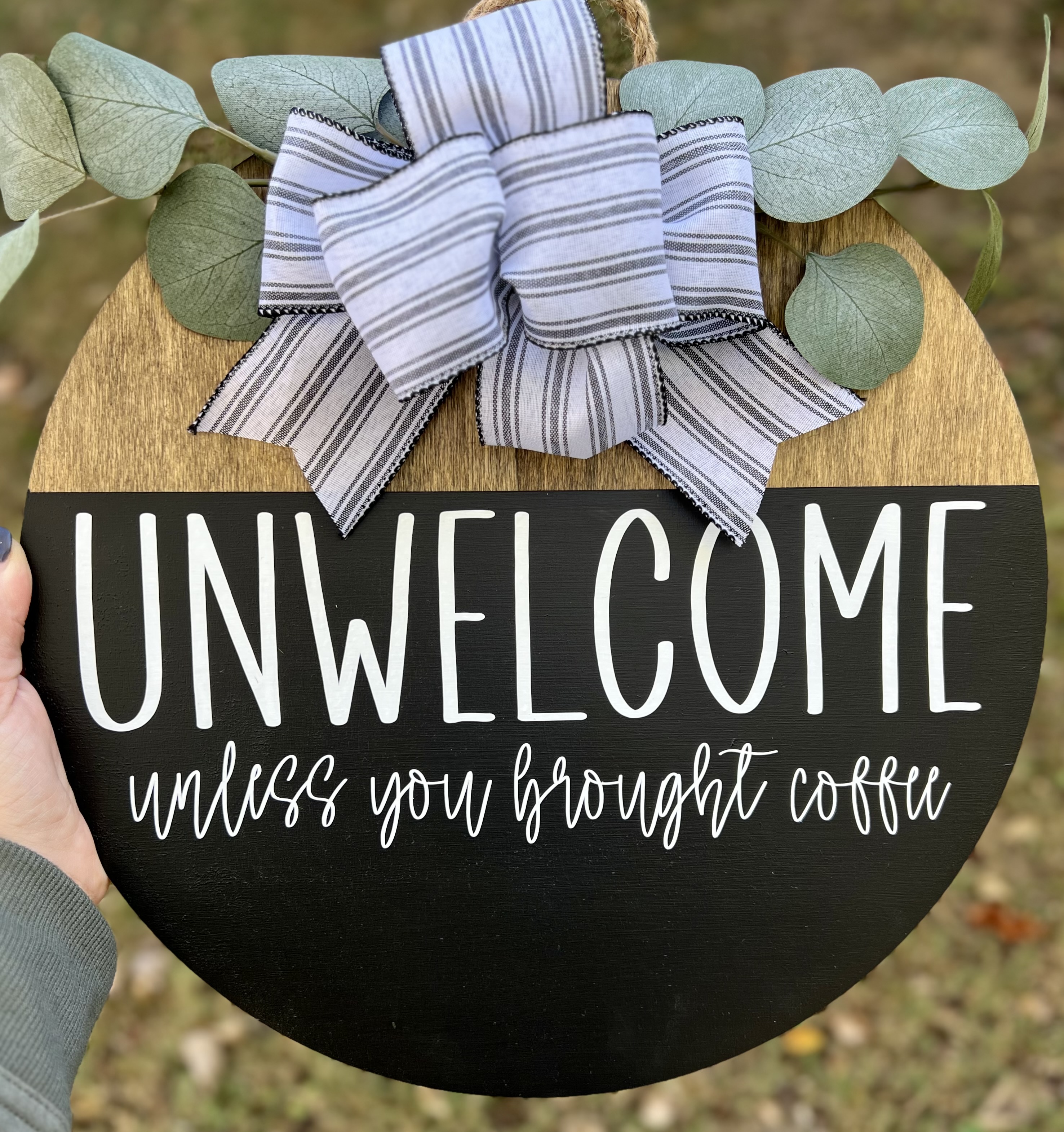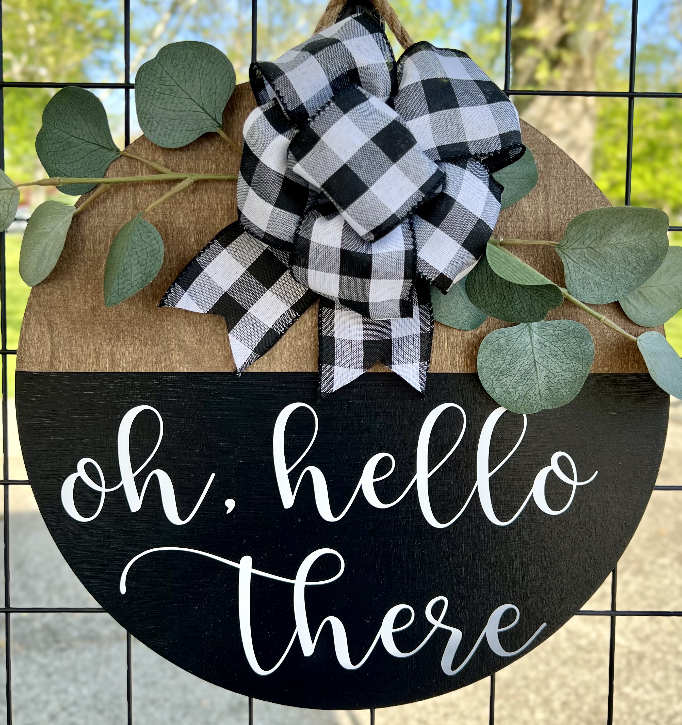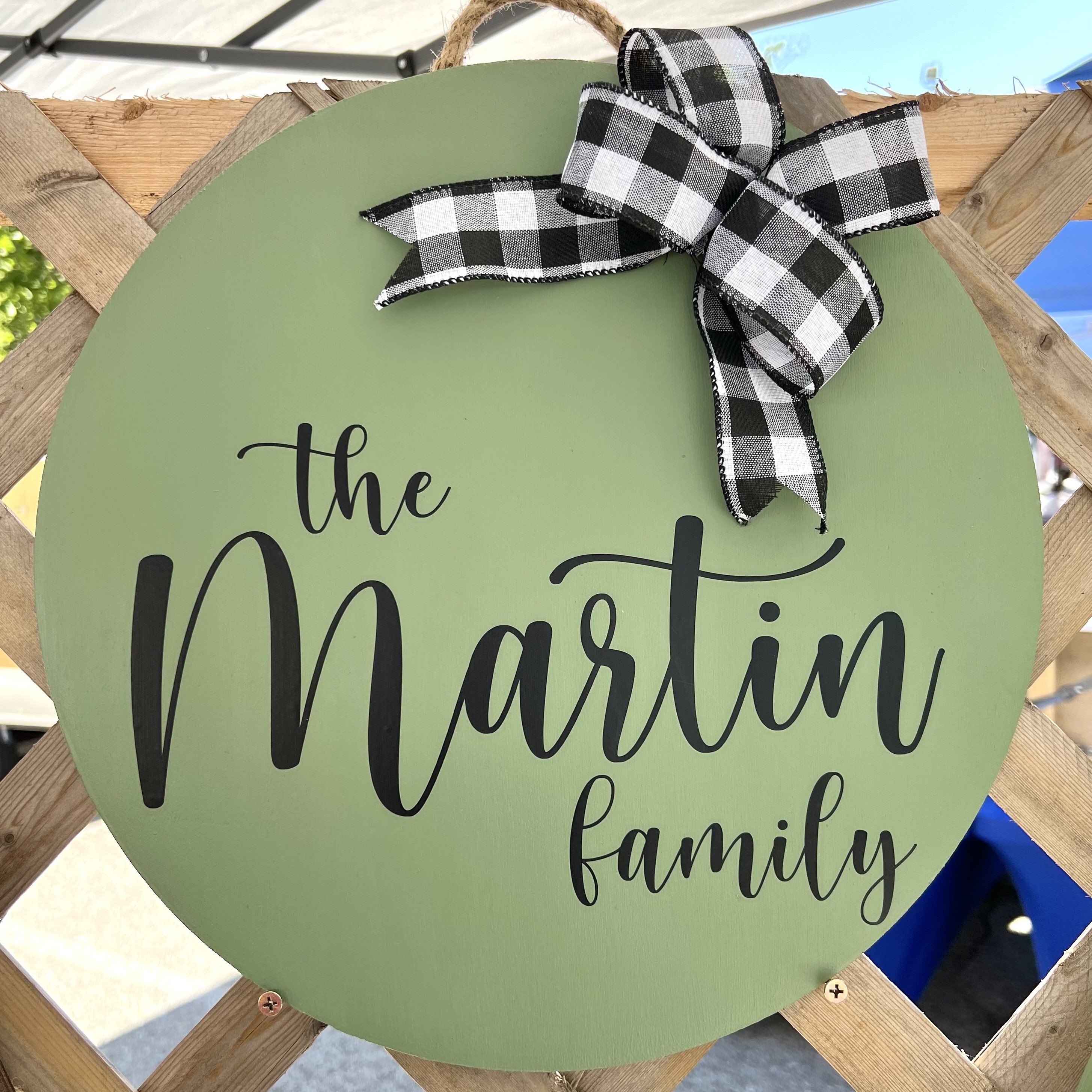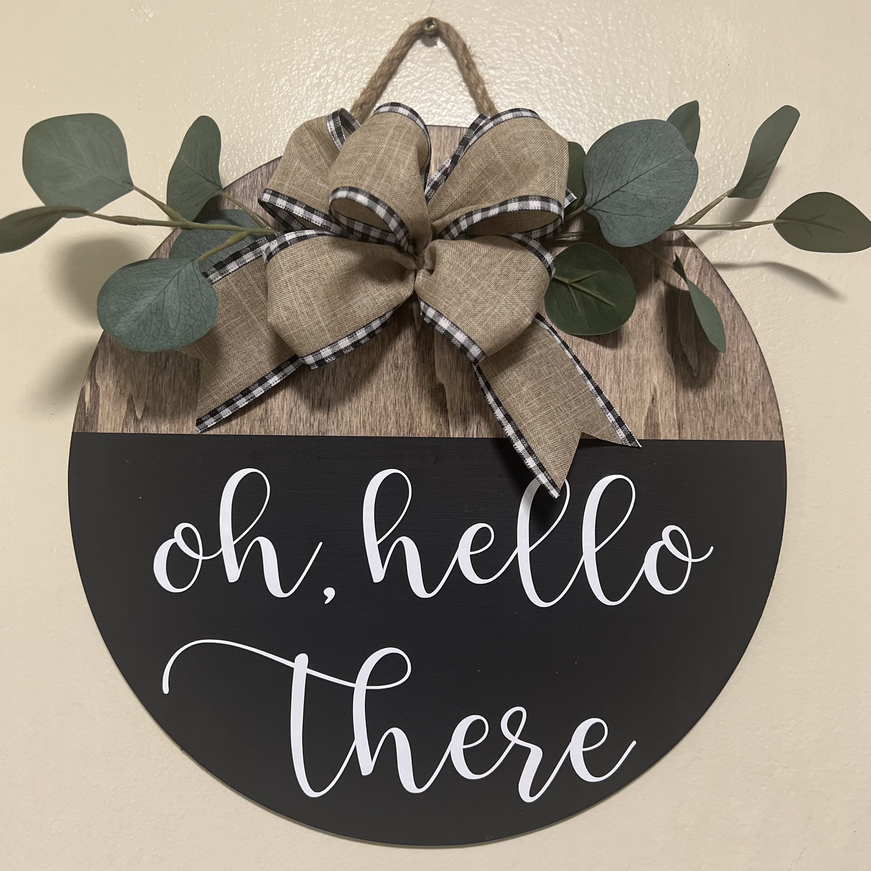 As with all of our collections, our door hangers can be completely customized to fit your preferences and needs! Here are examples of ones that we have created as well as their prices. As more items are added to the sign (stain, paint, ribbon, floral stems, etc.) the price reflects that. Some of these signs are available for purchase at this time and some can be ordered and made for you! If you have an idea of a sign or like pieces from multiple signs, we can design a custom sign for you!
